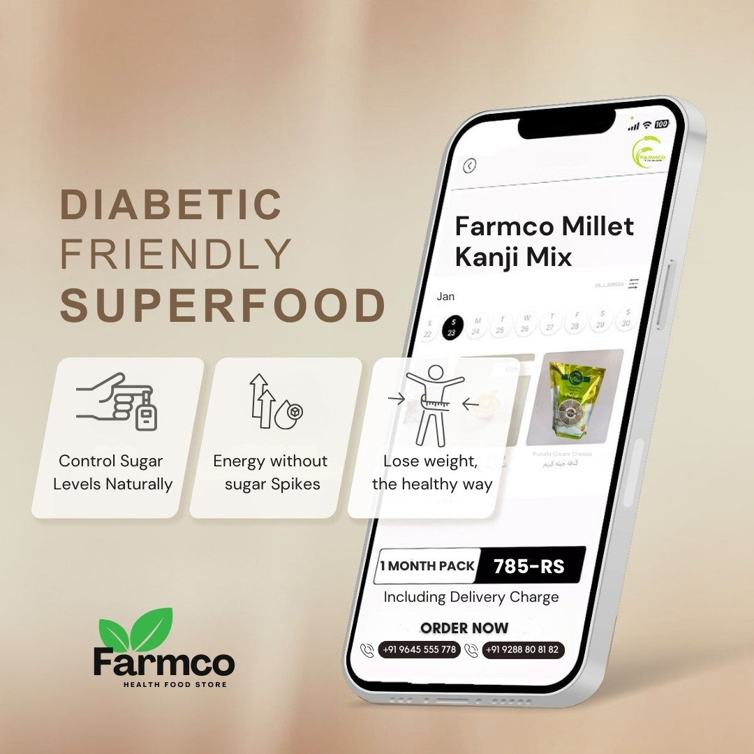 "Diabetic-Friendly. 100% Natural. Powered by Farmco Millets."
